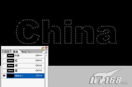 3.按下Ctrl+鼠标左键单击文字图层,将文字的选区提取出来,进入通道面板新建Alpha1通道。如图3所示。