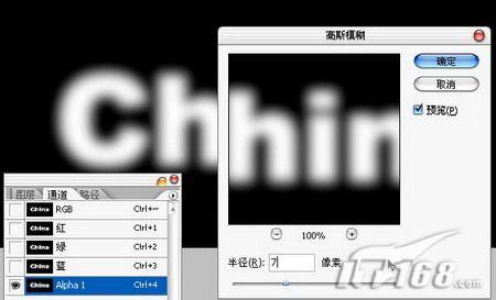 5.执行滤镜/模糊/高斯模糊,将模糊半径设置为7像素,单击确定按钮应用。如图5所示。