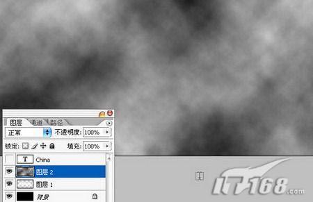 8.新建图层2,执行滤镜/渲染/云彩,制作出云彩效果。如图8所示。
