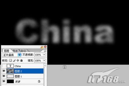 9.将图层2的图层混合模式设置为“正片叠底”,这样就可以将云彩附到文字上了。如图9所示。