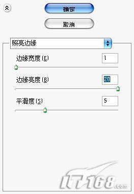 11.执行滤镜/风格化/照亮边缘,将边缘宽度设置为1,边缘亮度设置为20,平滑度为5,单击确定应用滤镜。如图11所示。