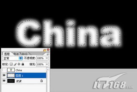12.再次提取Alpha1通道的文字选区,新建图层1并在图层1中填充选区。如图12所示。