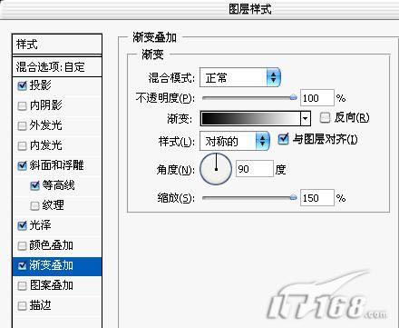 17.添加渐变叠加,渐变为黑白渐变角度90度。如图17所示。