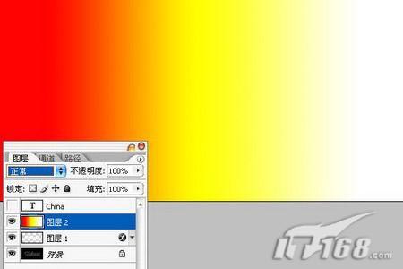19.新建图层2,使用渐变工具水平拉出一条红-黄-白的渐变。如图19所示。