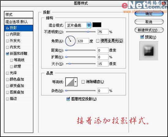 14、接着添加投影样式,设置如图: