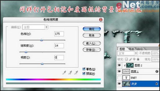 16、同样打开色相饱和度面板给背景层上色,设置如下图: