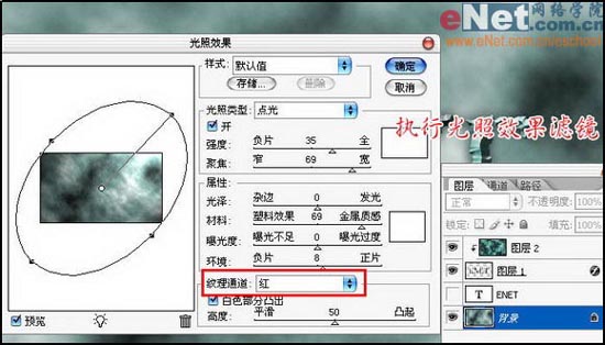 17、执行滤镜/渲染/光照效果,设置如下图: