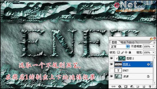 19、选取一个不规则画笔,在图层1绘制出上下的边缘效果。