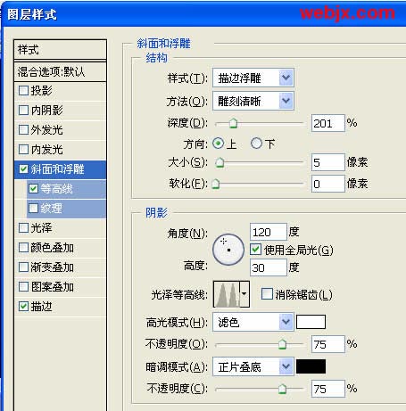 5、在回到原始文字层,然后设置如下样式。