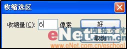 13、在工具箱中选择“魔棒工具”,单击图像中的白色区域,显示选区,然后执行菜单栏中的“选择”“修改”“收缩”命令,设置参数如图22所示,效果如图23所示。