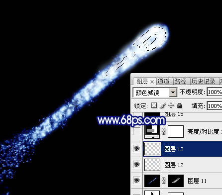 14、新建一个图层,混合模式改为“颜色减淡”,用画笔把顶部的高光区域涂出来,如下图。
