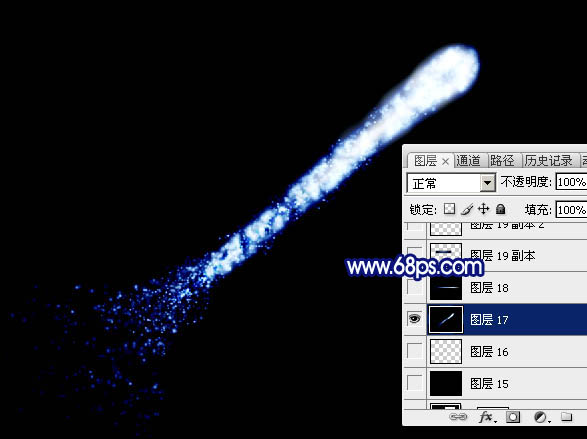 13、新建一个图层,混合模式改为“滤色”,把前景色设置为淡蓝色:#B8D7F5,用画笔把顶部需要加亮的部分涂上前景色。