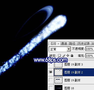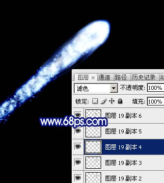 21、把变形的高光移到流星的最上面,混合模式改为“滤色”,效果如下图。