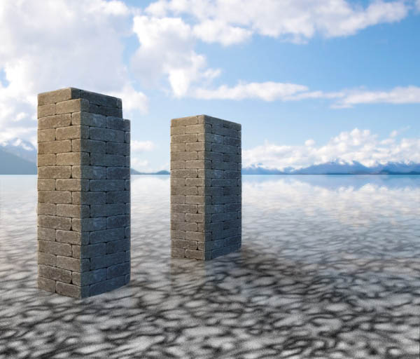 12、在蒙版处用黑色涂抹砖柱的阴影——阴影是不能反射任何物体的。