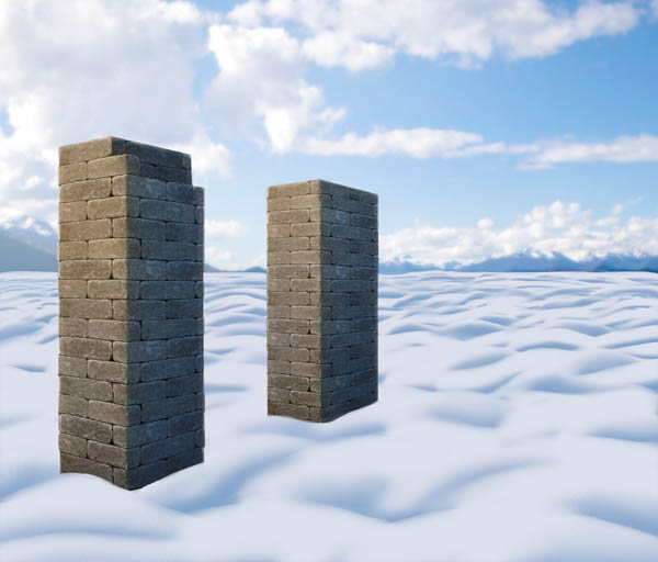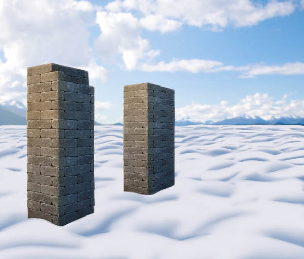16、创建新图层选中雪地区域,并用天空的浅蓝色填充(吸管工具I)。用这个图层给雪地阴影更合适的颜色。