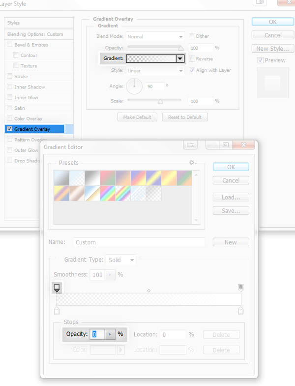19、距离越远雪堆的反差应该越不明显,所以我们需要远处背景的雪堆阴影应该用白色来盖一层。新建图层,填充任意颜色,双击图层添加渐变叠加。使用白色的渐变,但离我们近的部分(左边部分)完全透明。