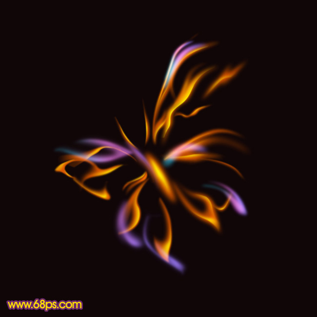 制作效果图之前,我们可以先找一张蝴蝶实物图参考一下,然后把主要的轮廓及线条提取出来,再用类似火焰的高光表现出来即可。