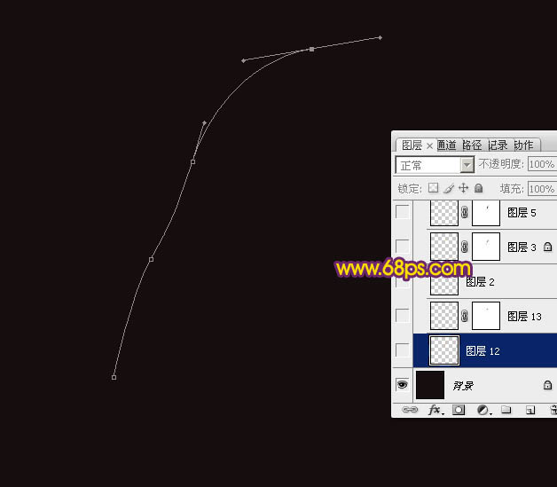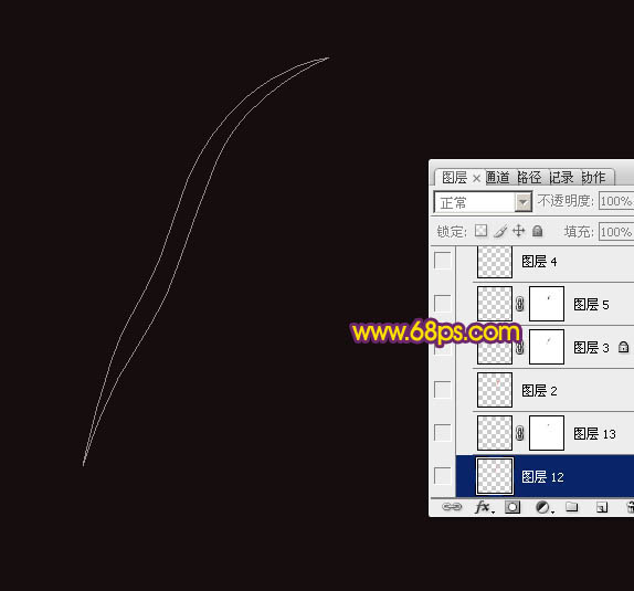 2、新建一个组,在组里新建一个图层,选择钢笔工具,在属性栏选择路径模式,然后勾出第一条高光路径,如图2,3。
