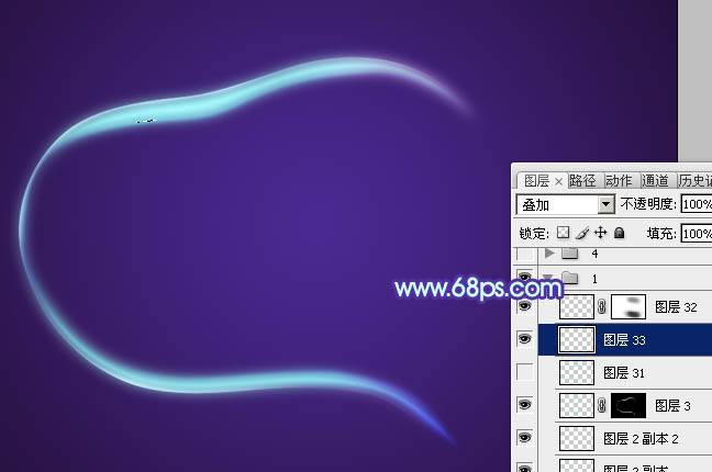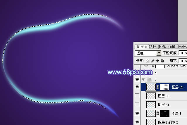 8、新建一个图层,用钢笔勾出外边缘较小的轮廓,转为选区后羽化3个像素,填充淡青色:#9EF0F1,混合模式改为“滤色”,如下图。