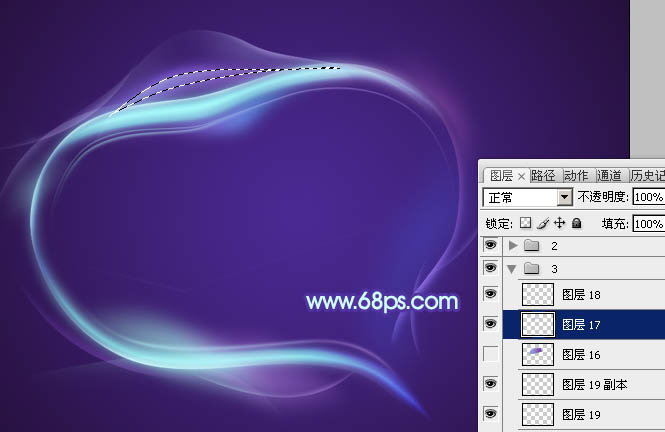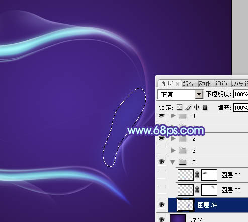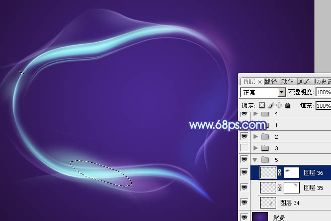 15、在背景图层上面新建一个组,再给心形边缘增加一些光斑。新建一个图层,用钢笔勾出下图所示的选区,羽化40个像素后填充暗蓝色。
