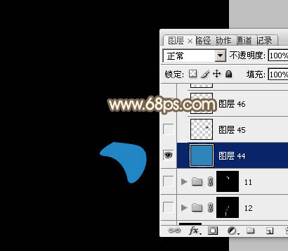 3、在组里新建一个图层,填充蓝色:#2F84BA作为底色,如下图。