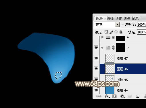 5、新建一个图层,用钢笔勾出底部的高光选区,适当羽化后添加淡蓝色。