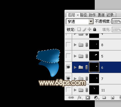 7、第二片画笔的制作方法相同,新建组,用钢笔勾出轮廓,转为选区后添加蒙版。然后渲染暗部及高光。