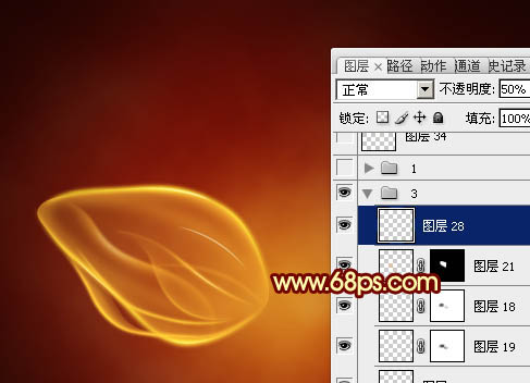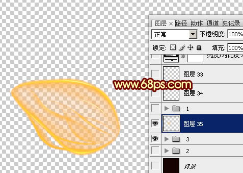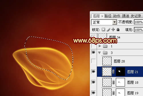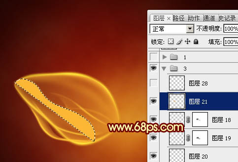 19、新建一个图层,用钢笔勾出下图所示的选区,填充橙黄色。