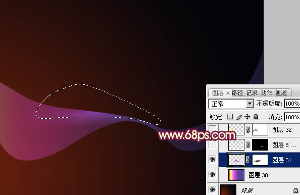 7、用钢笔勾出下图所示的选区,羽化2个像素后按Ctrl