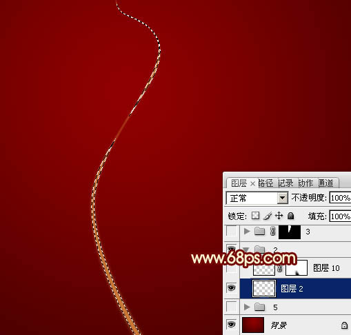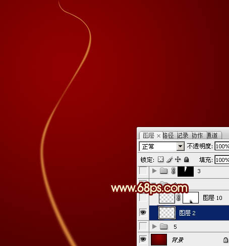 3、新建一个组,在组里新建一个图层,用钢笔勾出第一条光束轮廓,转为选区图3,羽化1个像素后填充橙红色:#D28038。取消选区后用模糊工具把底部稍微模糊一下,效果如图4。