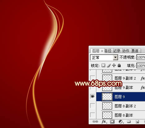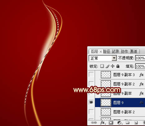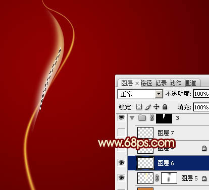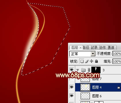 7、新建一个图层,用钢笔勾出下图所示的选区,羽化3个像素后填充淡黄色。