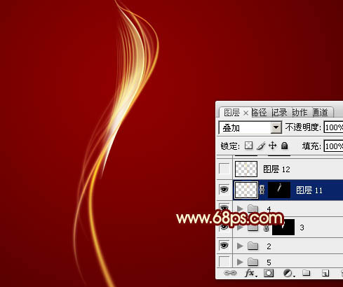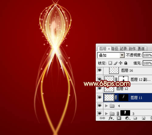 + Alt + Shift + E 盖印图层,混合模式改为“叠加”,按住Alt键添加图层蒙版,用白色画笔把光束需要增亮的部分擦出来,效果如下图。