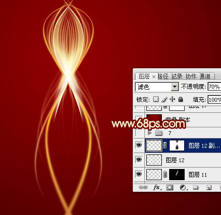 14、新建一个图层,混合模式改为“滤色”,把前景颜色设置为淡黄色,用画笔把光束的中间部分增加一些高光,适当降低图层不透明度,效果如下图。