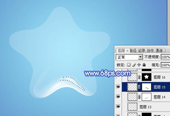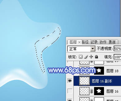 8、新建一个图层,用钢笔勾出下图所示的选区,羽化4个像素后填充白色,过渡部分再用蒙版控制好,如下图。