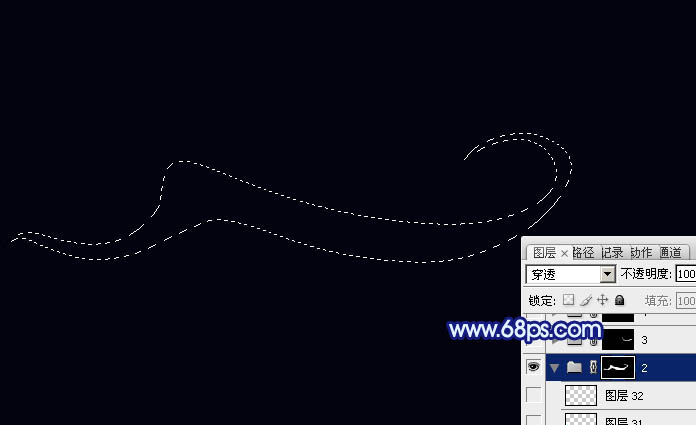 * 768像素的文件,背景填充黑色。新建一个组,用钢笔勾出光束的主体轮廓,转为选区后给组添加图层蒙版,如下图。