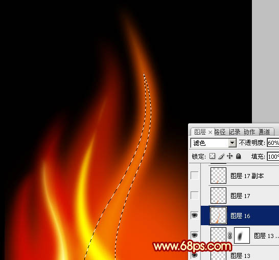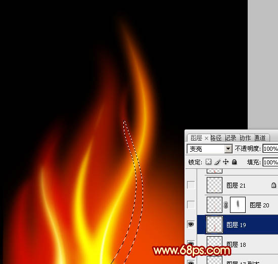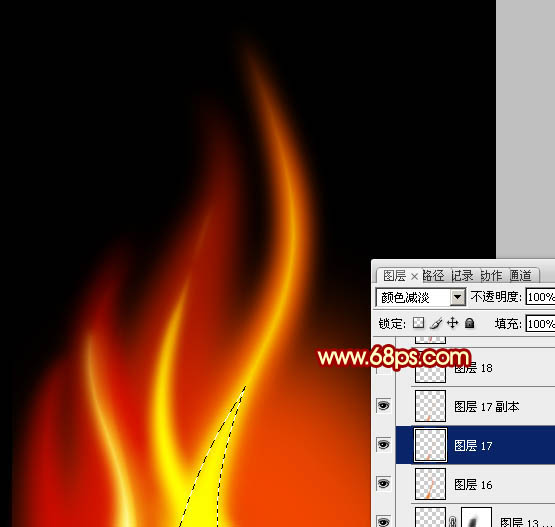 11、个别火焰如果希望高光自然一点,可以先铺一层橙红色,然后再渲染高光部分,主要好图层混合模式,如图11,22。