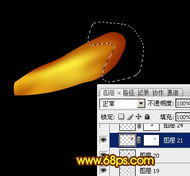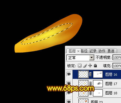 7、新建一个图层,用钢笔勾出中间高光选区,羽化6个像素后填充橙黄色,取消选区后添加图层蒙版,用黑色画笔把边缘过渡擦出来,如下图。