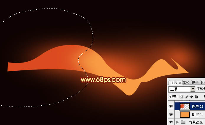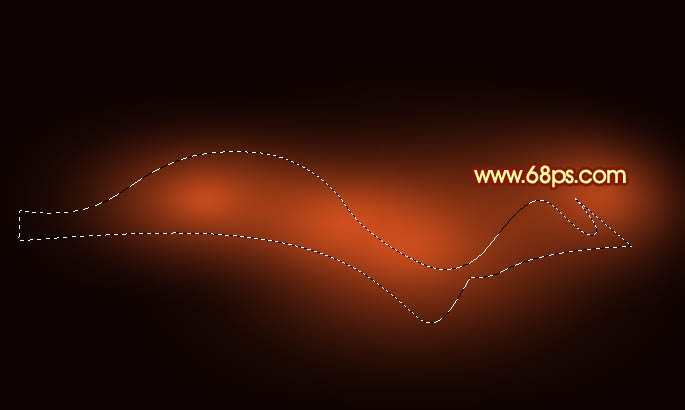 7、新建一个图层,用钢笔勾出左侧暗部选区,羽化25个像素后填充红色:#DB4B1F。