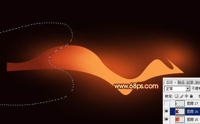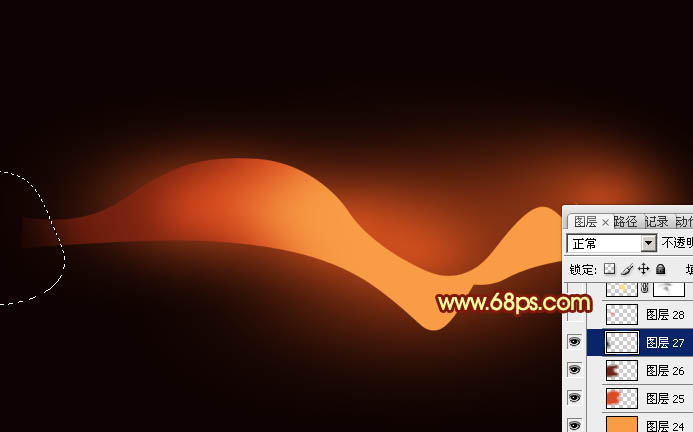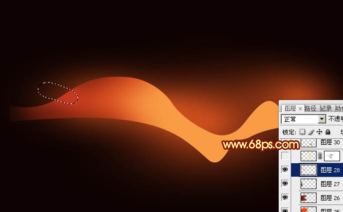 8、新建一个图层,用钢笔勾出左侧边缘暗部选区,羽化35个像素后填充暗红色。