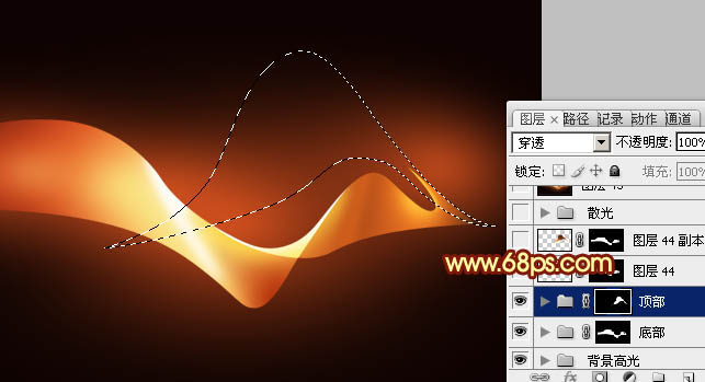14、新建一个图层,再加上中间的高光及其他部分的高光和暗部,底部光束基本完成,如下图。