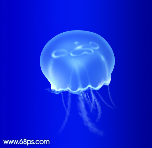 水母的制作有点类似水泡的制作。重点是把水母的高光部分渲染出来,尤其是边缘的一些高光。可以用涂抹工具直接涂抹,也可以用选区来控制。