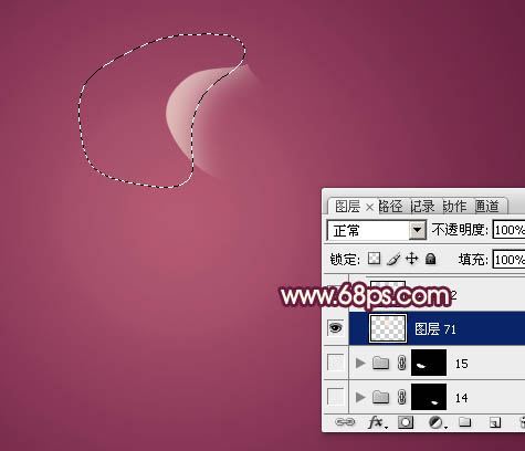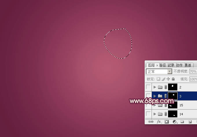 2、现在开始制作花瓣。新建一个组,用钢笔勾出第一片花瓣的轮廓,转为选区后给组添加图层蒙版。确定后把组的不透明度改为:70%,如下图。
