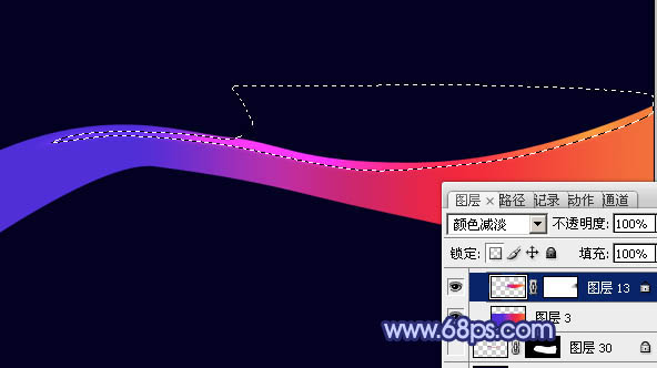 4、用钢笔工具勾出下图所示的选区,羽化2个像素后按Ctrl