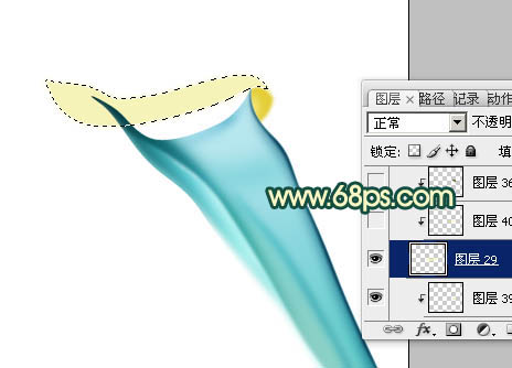 10、在当前组下面新建一个组,然后在组里新建图层,用钢笔勾出图16所示的选区,羽化1个像素后填充暗黄色,再用减淡工具把高光涂出来,效果如图17。