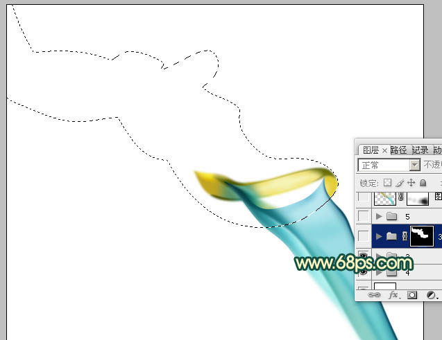 12、在图层的最上面新建一个组,用钢笔勾出第三段烟雾轮廓,转为选区后给组添加蒙版。因为这段烟雾最为复杂,里面也包含了很多细小的烟雾,处理的时候需要特别细致。