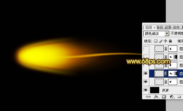 > 修改 > 收缩,数值为2,确定后新建一个图层填充黄色,混合模式改为“颜色减淡”,效果如下图。