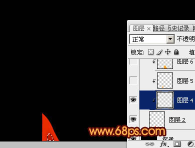 2、新建一个组,在组里新建一个图层,用钢笔勾出底部烟雾的路径,转为选区后填充橙红色:#E82B00,如下图。