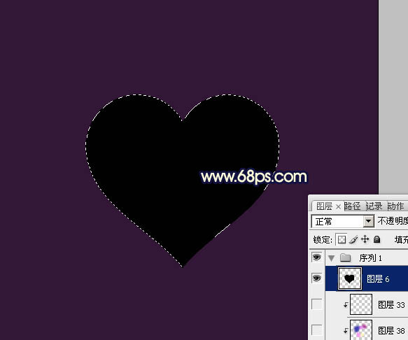 2、新建一个组,在组里新建一个图层,用钢笔勾出心形选区填充黑色,也可直接使用心形形状,大致效果如下图。