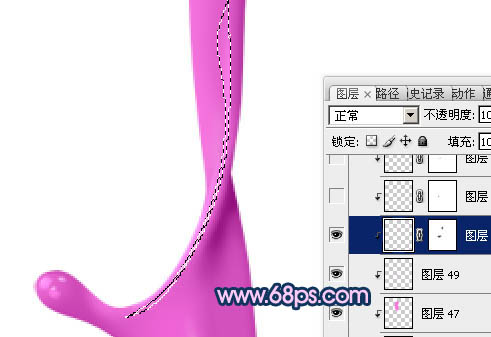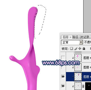 16、新建一个图层,用钢笔勾出顶部右侧暗部的选区,羽化1个像素后填充暗紫色,如下图。