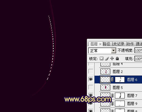 6、较小的光束如果勾图不方便,可以用钢笔勾出较大的弧度色块,如图6,然后用钢笔在边缘截取一点,适当羽化后按Ctrl